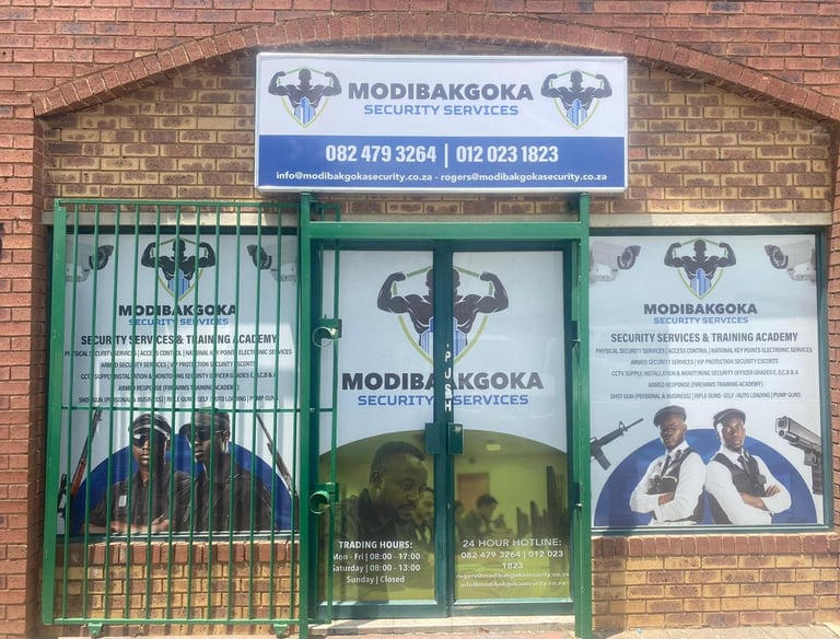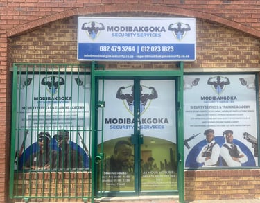 At Modibakgoka Security Services & Training Academy, we deliver dependable protection services while developing skilled, disciplined security professionals. Our industry-compliant training—from security grades E to A and firearms competency—is designed to equip you with practical knowledge, confidence, and integrity you can trust.